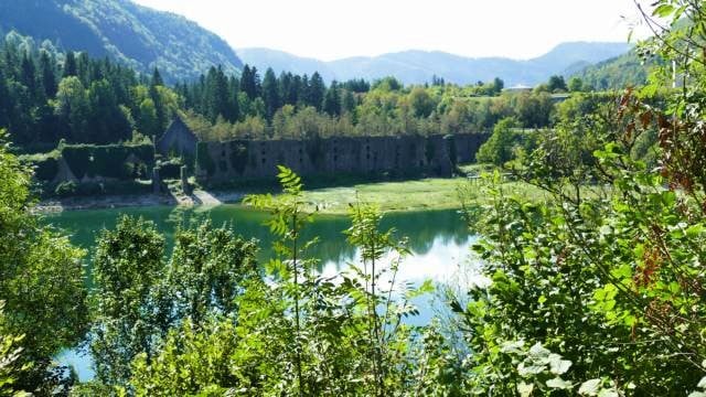 Côté ouest, se distinguent encore les ruines de l’ancienne usine des glacières, qui commercialisait la glace extraite du lac (jusqu’à 40 cm d’épaisseur de glace) jusqu’en 1917.