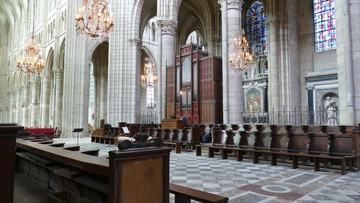 Comme souvent, cette cathédrale a été construite sur une ancienne cathédrale. Sa construction débute au 12e siècle et durera trois siècles, mais ne sera jamais achevée (clocher nord). Lors des bombardements allemands de la Grande Guerre, elle a été bien détruite, mais reconstruite... Enfin sans finir le clocher nord!