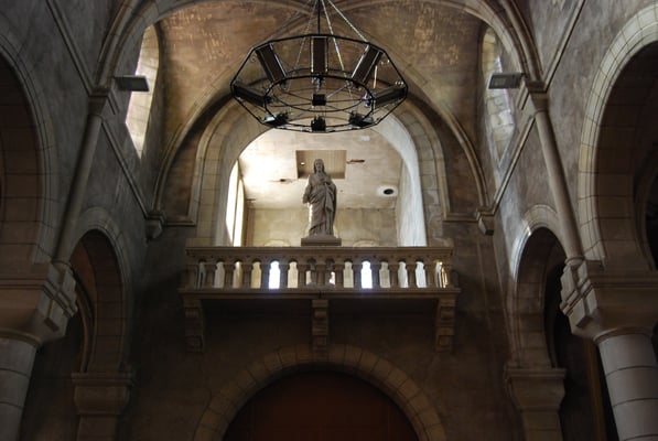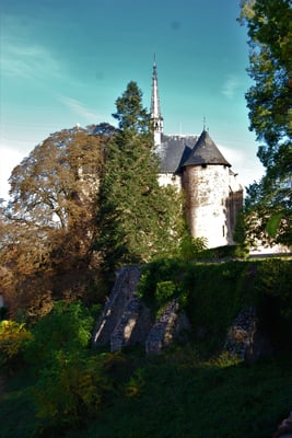 La chapelle (XVème, MH) où repose la famille de Chabannes depuis 1453, d'époque gothique flamboyant, accueille le gisant (XVème) de Jacques 1er de Chabannes et de sa femme, Anne de Lavieu.