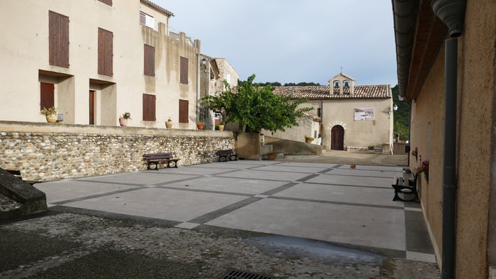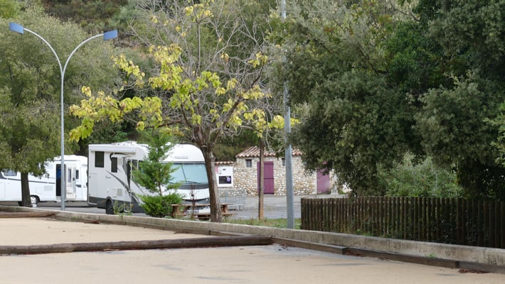 25 emplacements goudronnés, un peu en pente