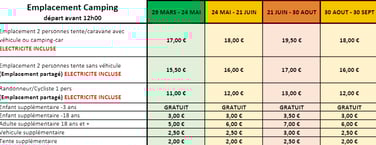Tarif : 2015