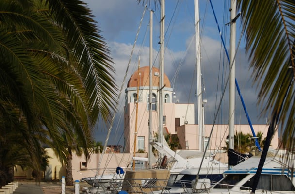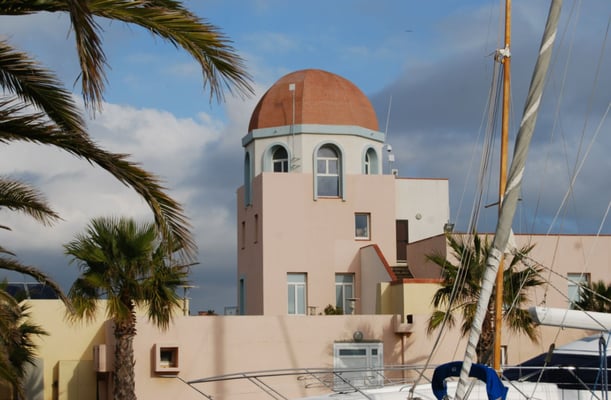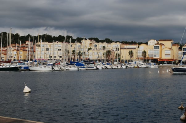Cette boule de granit de Sidobre de 14 tonnes a été sculptée par Poulet de Gruissan (Robert Garcia) en 1981, année de construction de la Capitainerie.. De cette forme, l’idée lui est naturellement venue de graver un globe, emblème du voyage très symbolique devant la Capitainerie, lieu d’accueil des plaisanciers.