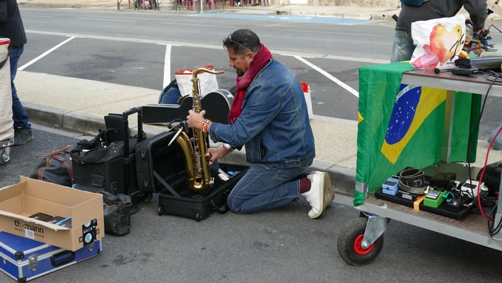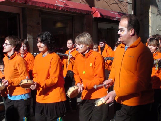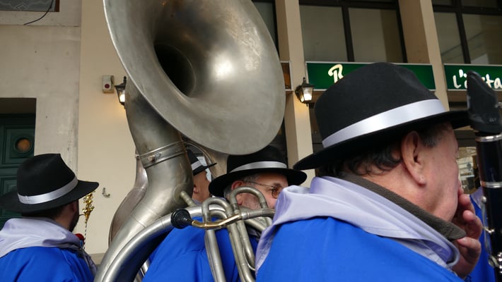 Les trois derniers membres de la bande, qui changent à chaque café, ne portent pas de sacs de confetti. Ils sont chargés de mener la musique, qui suit le groupe. Les musiciens jouent exclusivement les musiques traditionnelles du carnaval, qui représentent un répertoire étendu même si elles présentent de fortes ressemblances entre elles. Plusieurs d’entre elles sont inspirées de chansons populaires. La formation musicale traditionnelle est composée de trompettes, barytons, trombones, soubassophones, clarinettes ainsi que d'une caisse claire et d'une grosse caisse.