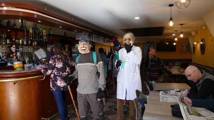 Le cortège marque l'arrêt aux cinq cafés historiques bordant la place. Lorsque l'un d'entre eux ferma momentanément par le passé, les "fecos" continuèrent à marquer l'arrêt, et ce jusqu'à sa réouverture. Si de nouveaux cafés ont ouvert plus récemment, ils ne se sont pas rajoutés à la liste des haltes.