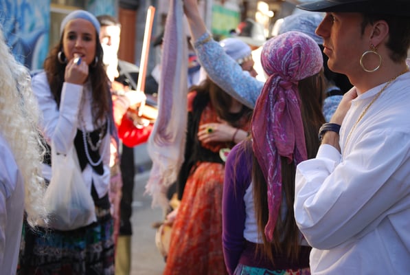 Derrière la musique, se trouvent ceux que l’on appelle les "goudils". Ils portent des costumes dépareillés et n’importe qui peut se joindre à eux
