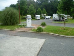 8 emplacements spacieux sur gravier, légèrement en pente,