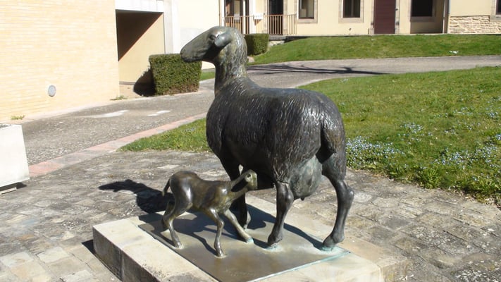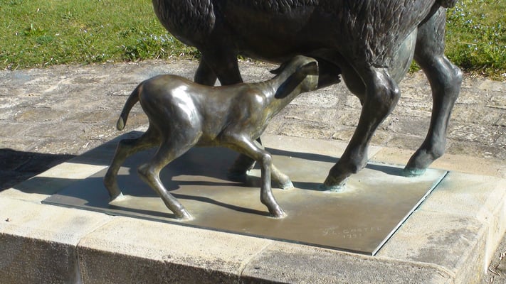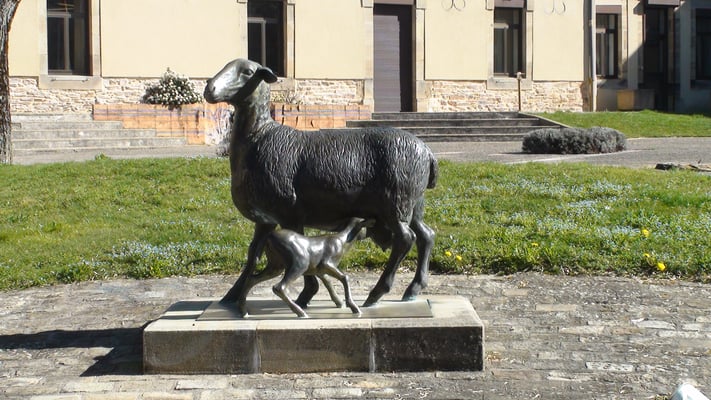Statue d'une brebis et de son agneau située devant la mairie de Réquista. La brebis étant le symbole de la ville.