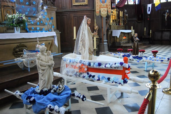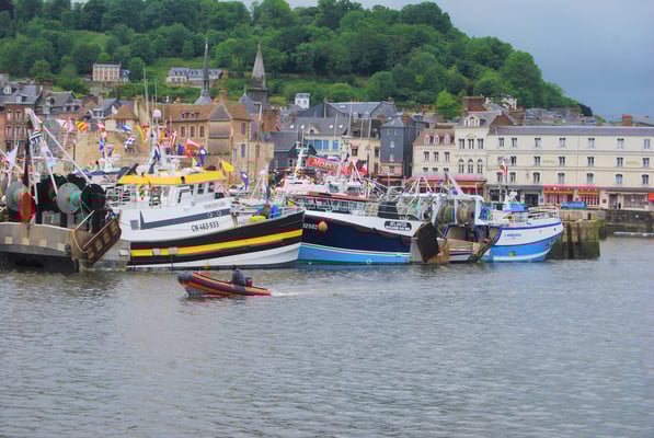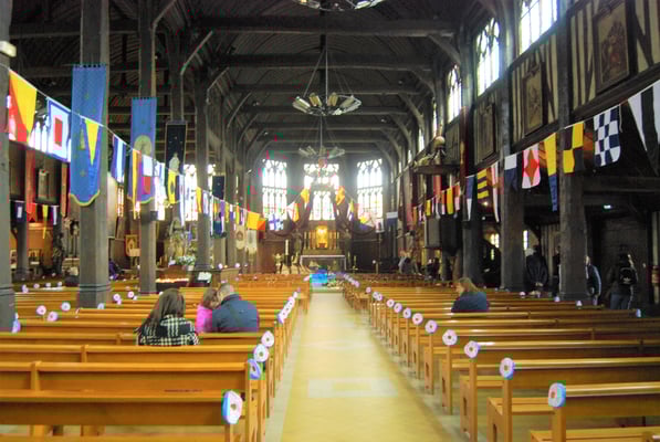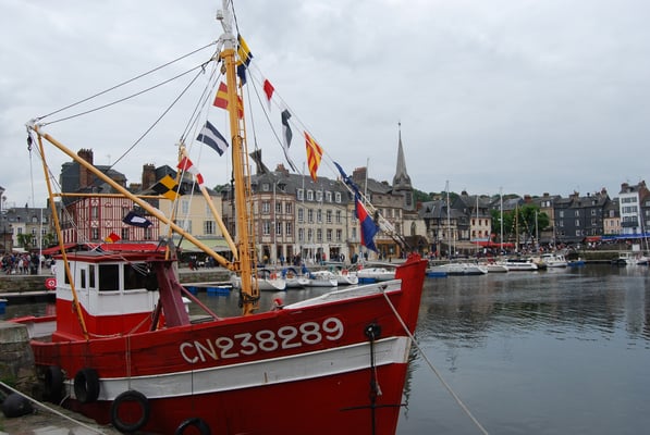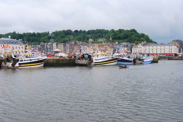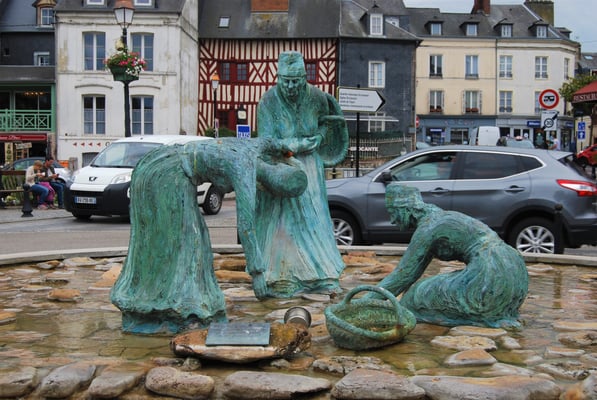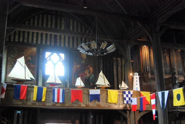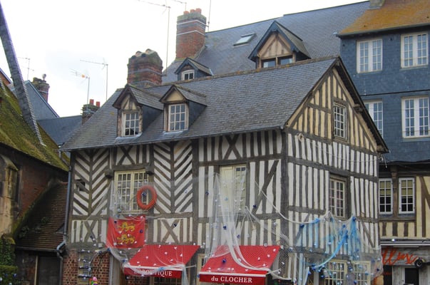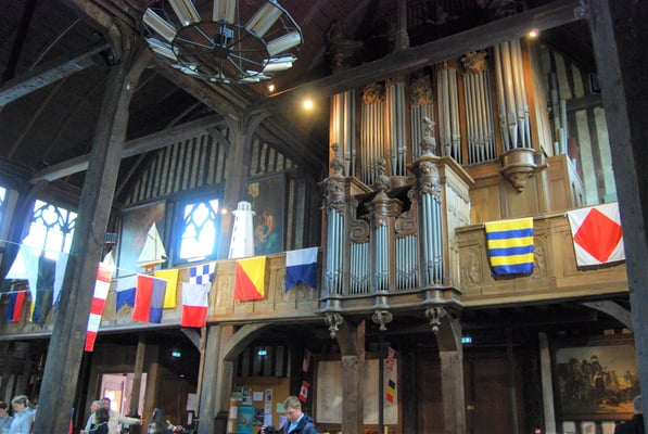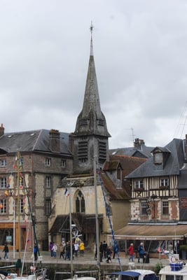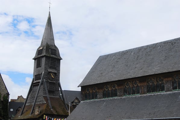 Datant de la deuxième moitié du 15e siècle, l’église Sainte-Catherine remplace une ancienne église de pierre détruite pendant la Guerre de Cent ans. Elle fut édifiée par les habitants de la ville après le départ des Anglais. Disposant alors de peu de moyens, ils utilisent, comme matière première, le bois en provenance de la forêt de Touques et leurs connaissances en construction navale.