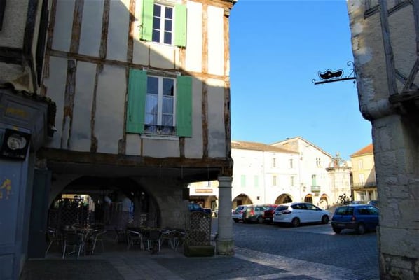 visiter Eymet un jeudi matin si possible, lorsque la place principale de la ville est la plus animée grâce au marché hebdomadaire.
