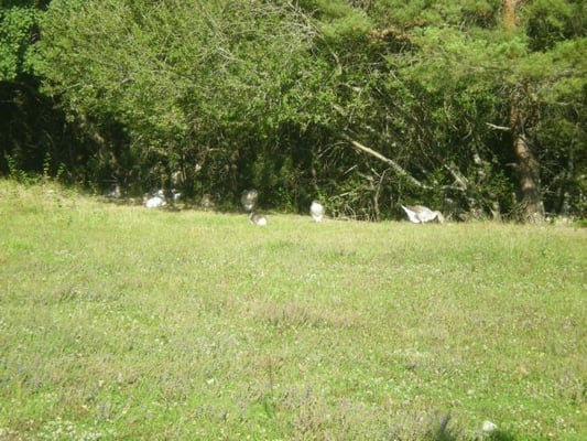 Je me suis couché au milieu des oies et des petits lapins le décor n’a pas changé au réveil…La au moins un producteur de foie gras ne fait pas de l’élevage intensif les bêtes courent et grignotent dans les prés…