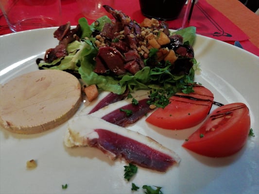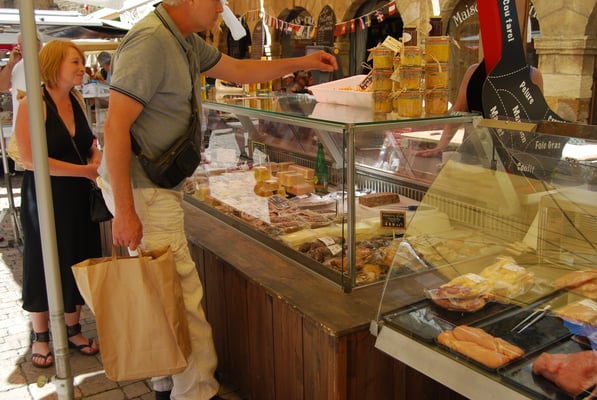 Produits locaux, viande, légumes frais, fromage, pain, vins, bières