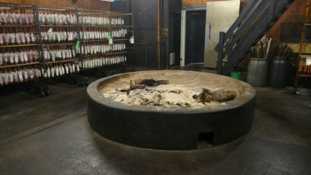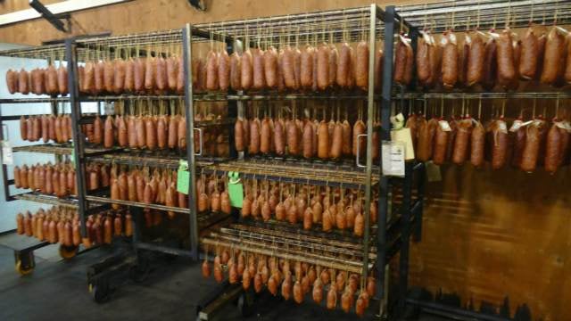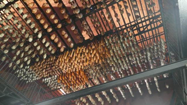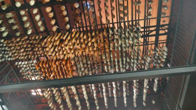 Le procédé de salage et de fumage est maintenant largement apprécié, au-delà de ses ambitions premières de conservation. Il faut dire que l’art du fumage, bien maîtrisé, détient le pouvoir de mettre en valeur l’intensité du goût de la viande. Le salage à sec, première étape, nécessite une gestuelle particulière qui consiste à mélanger du sel avec des épices et à en frotter les pièces. Quant au fumage à froid traditionnel, il demande d’utiliser de la sciure d’épicéa et de sapin pour faire monter le fumoir en température sans jamais toutefois dépasser les 30°. Ici, pas de processus industriel mais de la viande de première qualité, travaillée à 900m d’altitude dans le plus pur respect des méthodes d’antan et, surtout, surtout, avec ce qu’il lui faut de temps pour être naturellement valorisée.