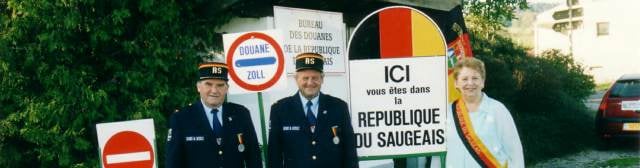 A sa présidence et en qualité de chef du protocole, succédant à sa mère Gabrielle Pourchet, Madame Georgette Bertin-pourchet, troisième du nom, reçoit officiellement les personnalités en visite sur les terres de la dite-république et honore de sa présence toutes manifestations sportives et culturelles. Pour parfaire son identité, la République du Saugeais dispose aussi d’un blason, d’un hymne, d’un timbre postal, d’une monnaie, d’un douanier accordant les laissez-passer et, il y a encore peu d’années, d’une langue propre, la Saugette, dont les origines remonteraient à la Guerre de Trente ans au XVIIème siècle.