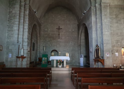 Restaurée au XVIIe siècle, elle a conservé ses belles voûtes en cul de four soigneusement appareillé, un puits existant depuis l'origine du sanctuaire (dans sa partie gauche), un banc en pierre taillée à l'usage des clercs (dans la chapelle de la vierge).