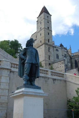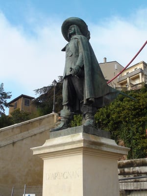D'Artagnan originaire de Lupiac est en bonne place au milieu de l'escalier monumental qui est en pleine rénovation...