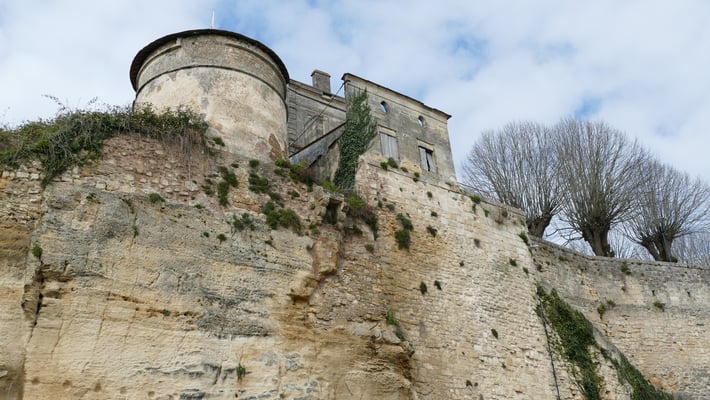 Dès la fin du IVème siècle, elle était fortifiée, mode d’habitat transitoire entre la villa gallo-romaine et le château féodal et elle devint une véritable forteresse au moment des grandes invasions, érigée en propriété royale au VIIIème siècle (avec l’église et l’Abbaye de Saint-Vincent en son sein) ; mais après le passage des Normands, on consolida encore ses murs d’enceinte. Passée sous la domination anglaise après le divorce de Louis VII et le mariage d’Éléonore de Guyenne (Aliénor d’Aquitaine) avec Henri Plantagenêt, elle fut le bouclier de Bordeaux pendant trois siècles, place de guerre très sollicitée par les deux puissances ennemies.
