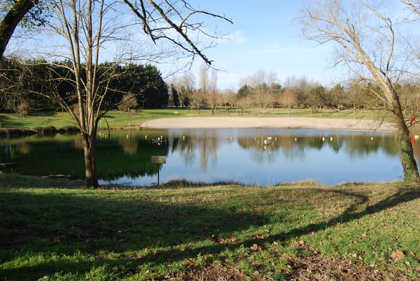 Lac artificiel avec plage de sable