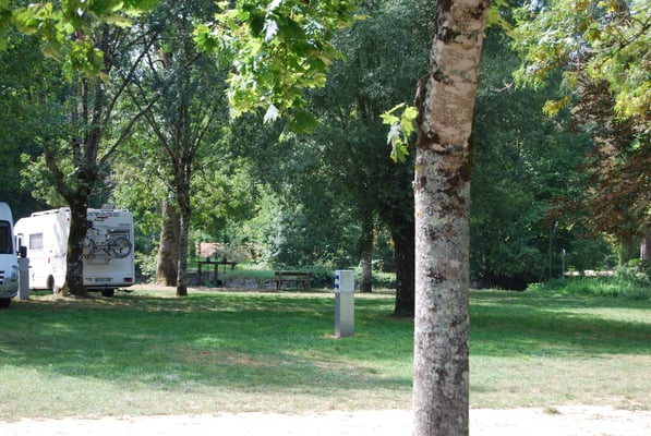 Je suis installé sur l'aire camping car park (aux dernières nouvelles n'appartient plus au réseau Camping car park)très belle à l'ombre des arbres à deux pas du château 9,80 € soit 11 € avec la taxe de séjour...