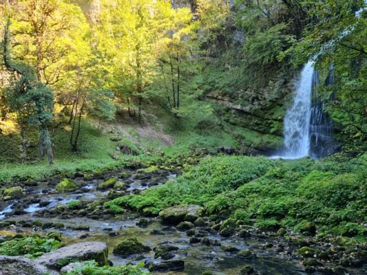 Accessible en toutes saisons, la cascade est grandiose après une averse et magique l'hiver, quand elle se pare de son habit de gel.