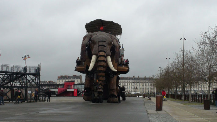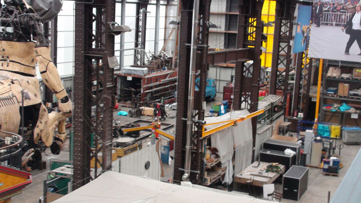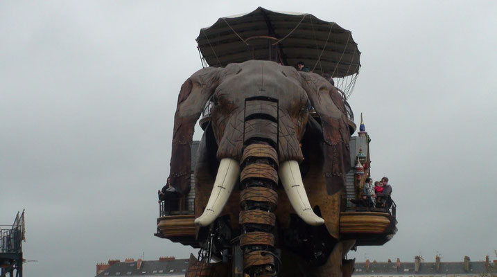 Depuis le dos du Grand Éléphant, vous êtes comme au 4e étage d’une maison qui se déplace, avec vue « imprenable » sur le site des anciens chantiers navals.