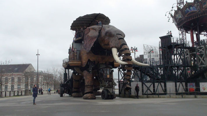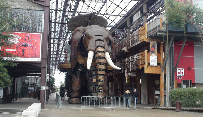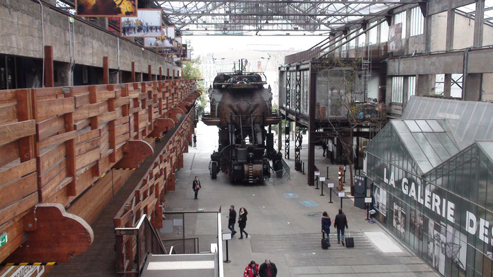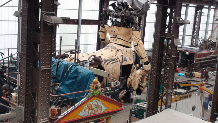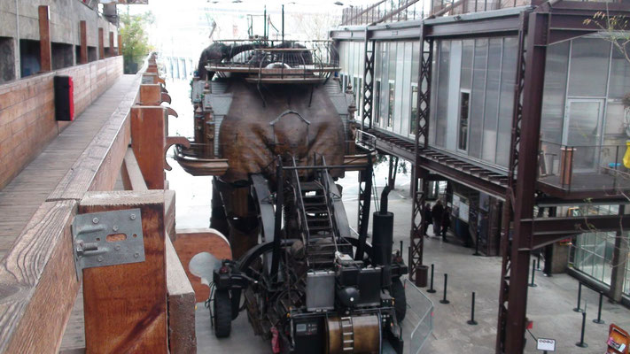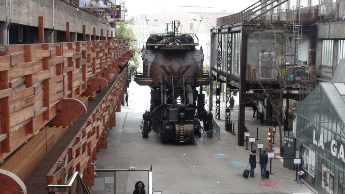 Le Grand Éléphant fait le lien entre le Carrousel des Mondes Marins, et les Nefs où sont situés l’atelier et la Galerie des Machines, centre de la proposition artistique des Machines de l’île.