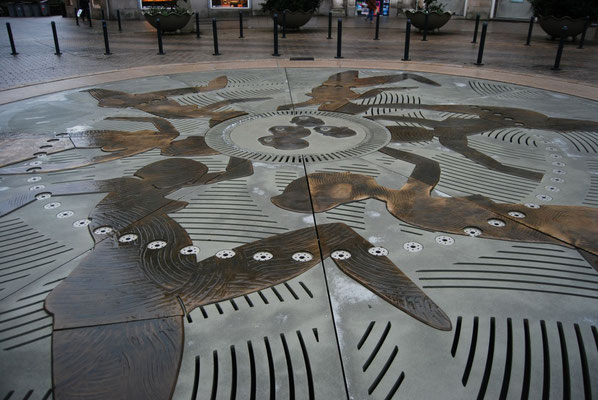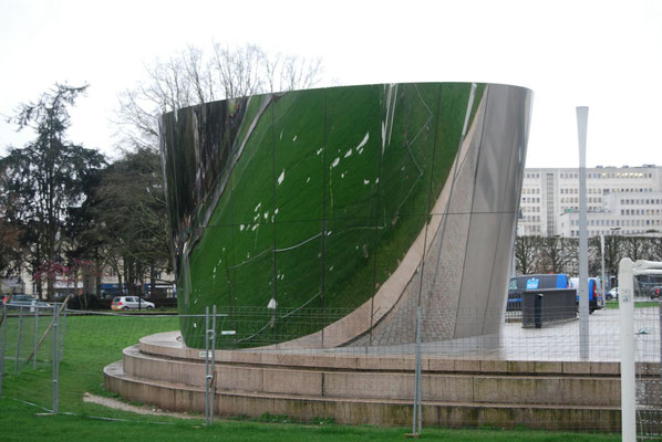 Ce carrousel géant, de près de 25 m de haut et de 22 m de diamètre, est une machinerie qui réveille l’art forain. Trois manèges sont empilés dans une véritable dentelle de béton, surmontée d’un chapiteau orné de frontons, et gardés par 16 pêcheurs originaires de tous les océans du monde.