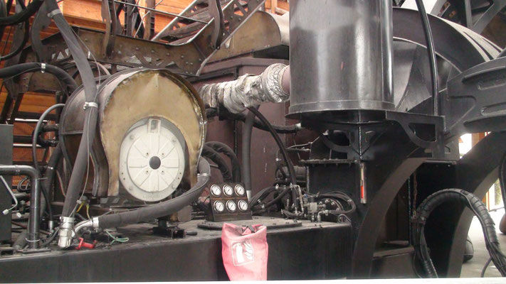 Carcasse métallique irriguée par 2 000 litres d’huile hydraulique