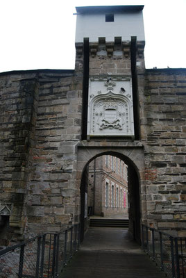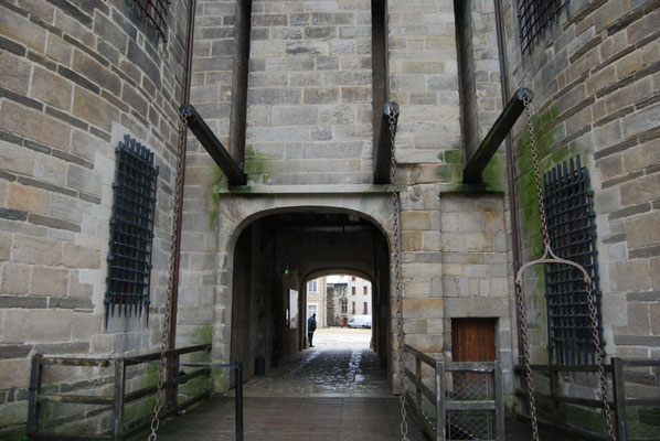 Côté ville, c’est une forteresse dont les 500 mètres de chemin de ronde sont ponctués de sept tours reliées par des courtines.