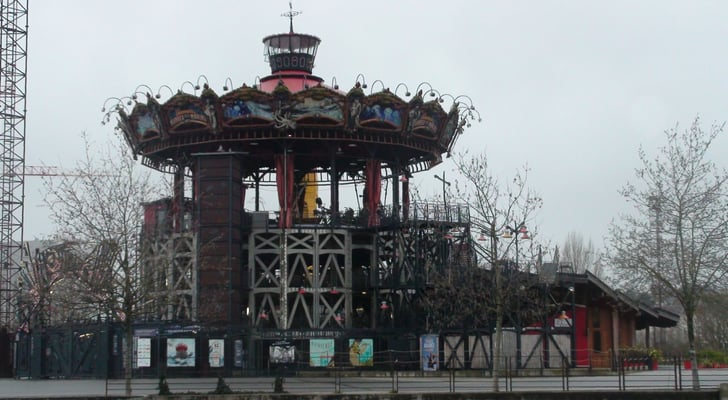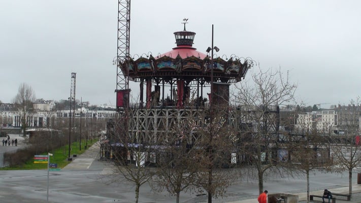 Situé en bord de Loire, face au Musée Jules Verne, le Carrousel des Mondes Marins semble sortir du ventre de l’Île de Nantes, à l’endroit le plus maritime de la ville.