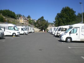 20 emplacements légèrement en pente, délimités, goudronnés.