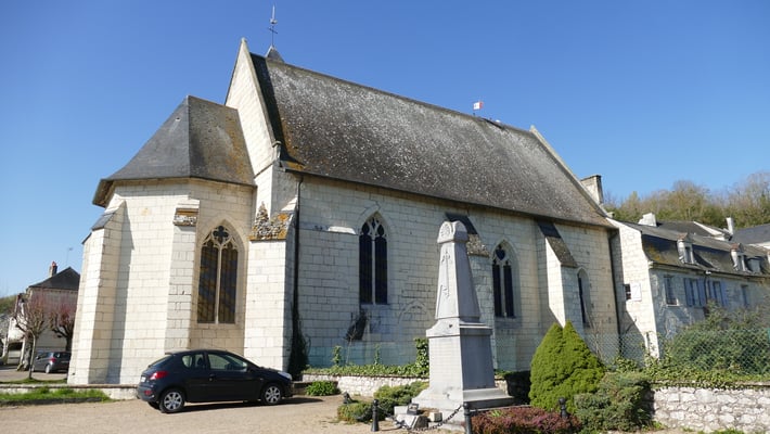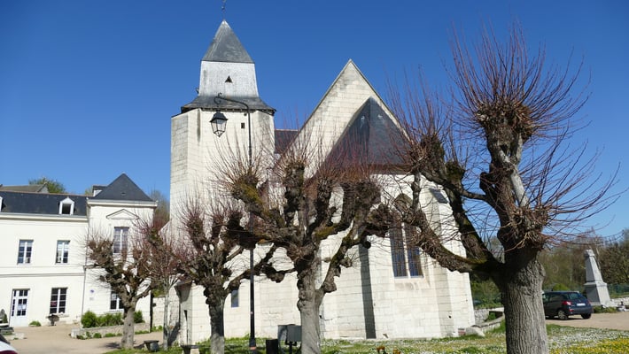 est construite au pied du coteau sur un terrain instable gagné sur le lit du fleuve. Par conséquent, au rythme des crues de Loire, l’édifice est régulièrement endommagé. Il ne reste qu’une porte du XIIème siècle, la construction aujourd’hui datant principalement des XVème et XVIème siècles. Encore tout récemment la commune a entrepris des travaux de restauration avec notamment une série de vitraux signés du maître-verrier Philippe Brissy.