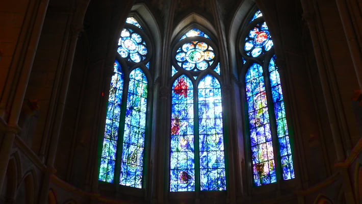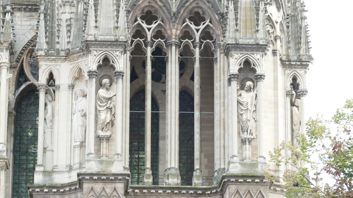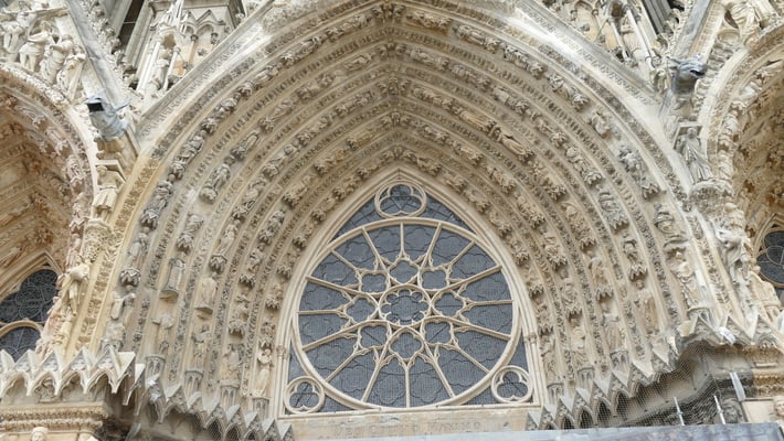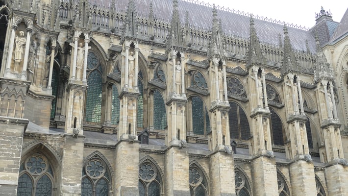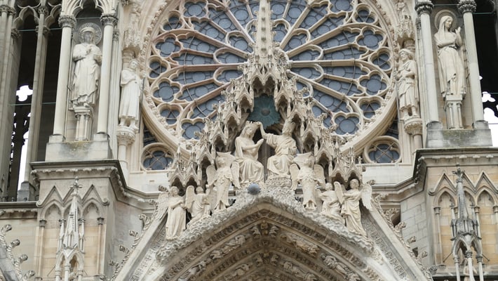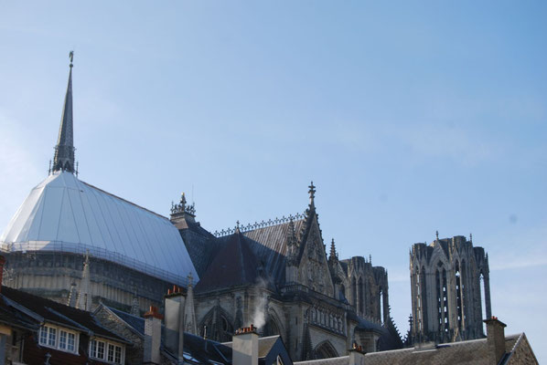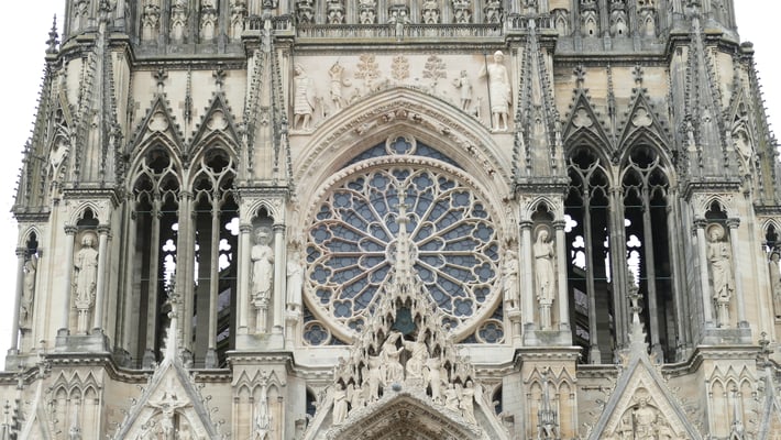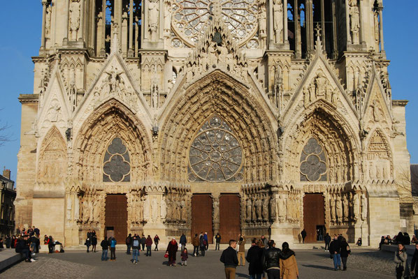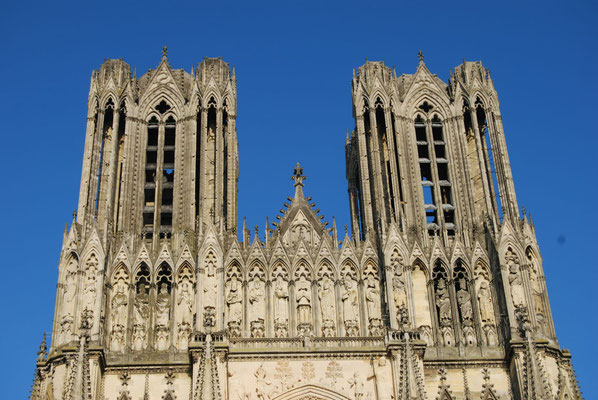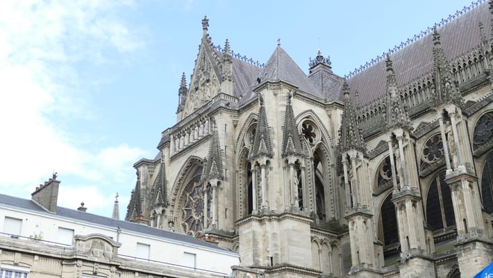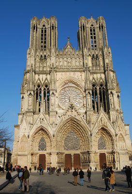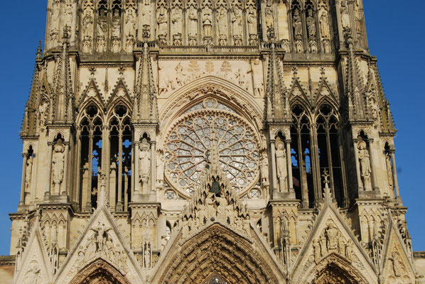 La Cathédrale du sacre des rois de France est un chef-d'oeuvre de l'art gothique édifié à partir de 1211. Fortement endommagée pendant la première guerre mondiale, la Cathédrale comporte également une prouesse architecturale du XXe siècle : une charpente en béton armé élaborée par l'achitectre Henri Deneux, ainsi qu'un riche ensemble de vitraux contemporains dessinés par Marc Chagall (1974), Imi Knoebel (2011 et 2015)...