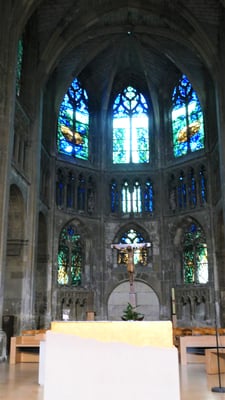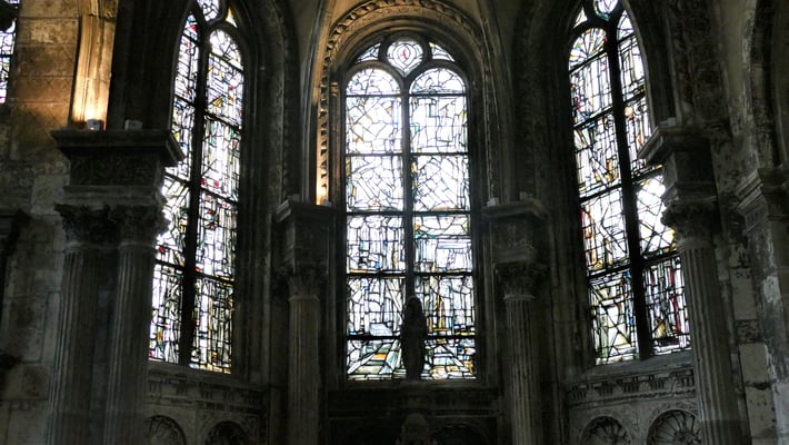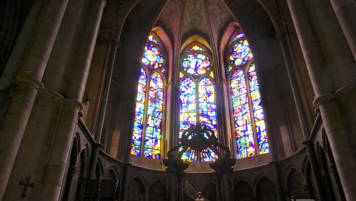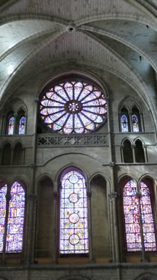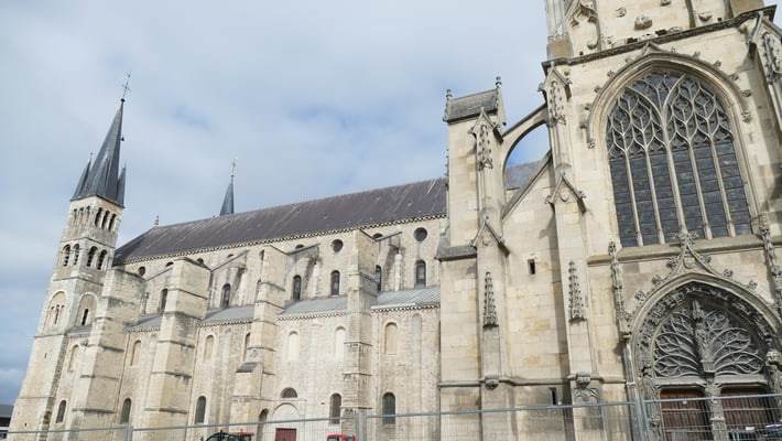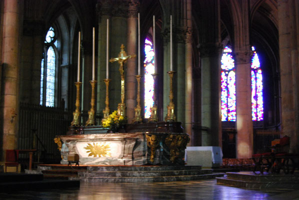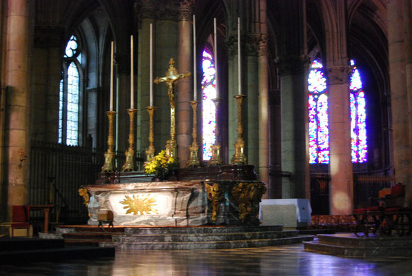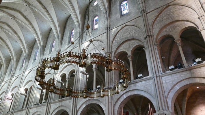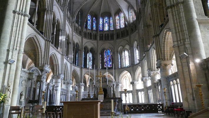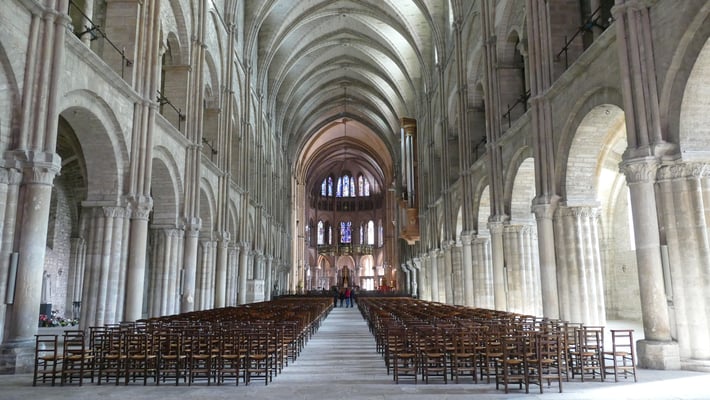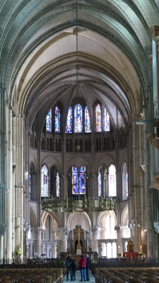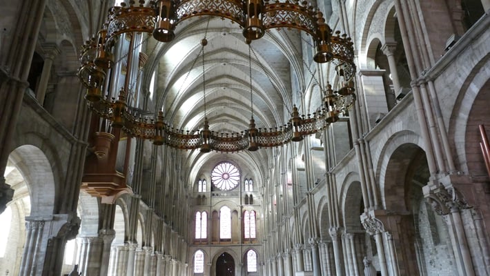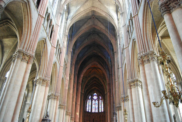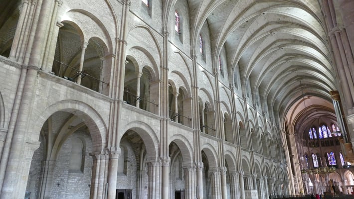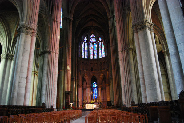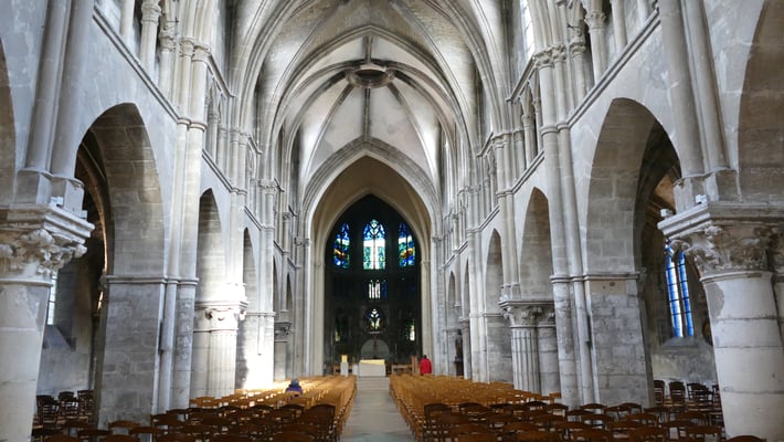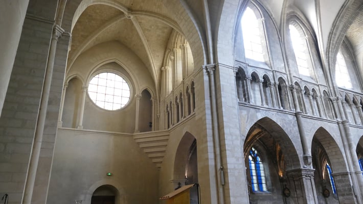 La sobre nef romane et le chœur gothique (fin du XIIe siècle) à quatre étages constituent un ensemble impressionnant de légèreté et d'harmonie. La façade fut construite en même temps que le chœur.