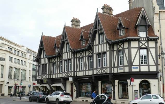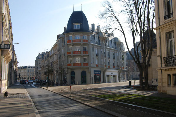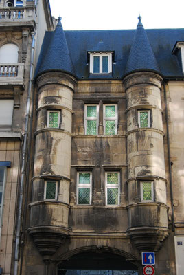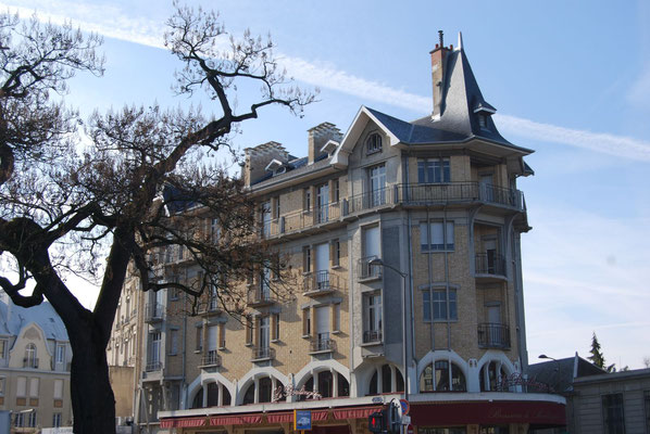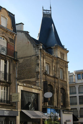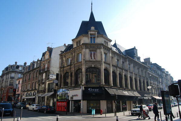 permis de construire délivré le 27 octobre 1930 qui autorise la construction d’un immeuble à destination d’habitation et de commerce. Réalisé pour son propre compte par l’entrepreneur, architecte Lucien Gillet. L’entrepreneur a demandé l’autorisation de construire un cinquième étage. Il en compte sept actuellement. L’un des immeubles les plus élevés du centre ville pour la période de la reconstruction en 1930. Tous les matériaux dont utilisés, la pierre, la brique, le béton. Les styles les plus divers se côtoyant; le style haussmannien, Art Déco et régionaliste sont les plus courants. La ferronnerie occupe une place importante dans le décor de l’architecture.Les dômes d’angle seront préconisés par la ville pour marquer les croisements des rues. Ils seront parfois remplacés par des belvédères.Tout le rez-de-chaussée est sur poteaux en ciment armé et brique.Les balcons sont en ciment armé et pierre avec garde-corps en fonte.Des oriels sur cinq étages en béton.Les deux derniers étages sont en retraits derrière les terrasses, ils semblent être des ajouts postérieurs. Au 4e étage sur une assise de cinq larges bandes horizontales de brique, les murs de béton sont percés de fenêtres simples. L’angle à pan coupé est coiffé d’un belvédère.Un attique à balcon à colonnettes en béton termine la construction.