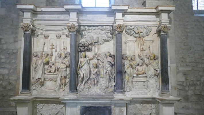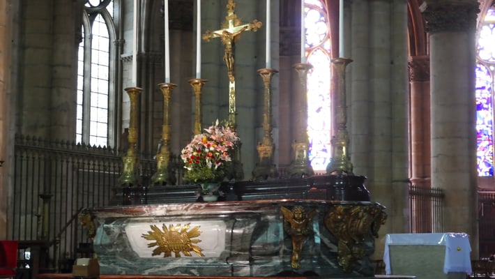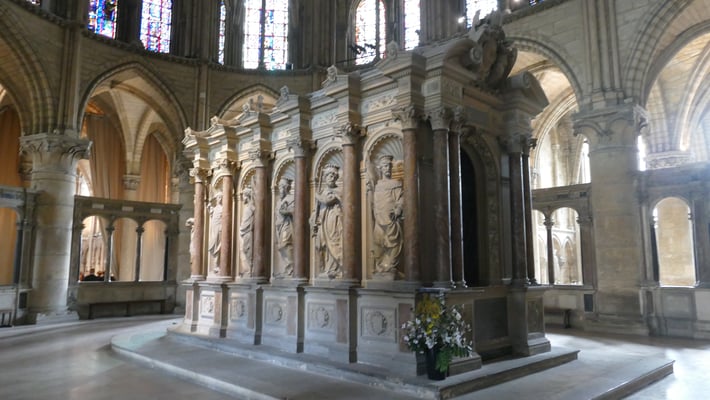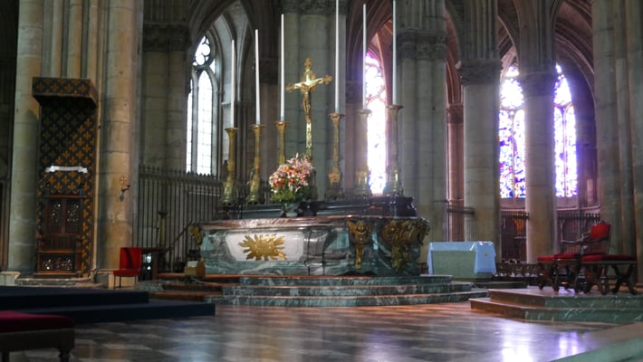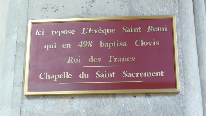 Au total, 33 souverains furent sacrés à Reims. La cérémonie, longue de 5 heures, se poursuivait par le banquet du sacre au Palais du Tau et par un pélerinage auprès du corps de l'évèque Remi. A la fin du Ve siècle, Remi, évêque de Reims, baptise Clovis, roi des Francs scellant ainsi l'alliance entre l'Église et la monarchie franque.