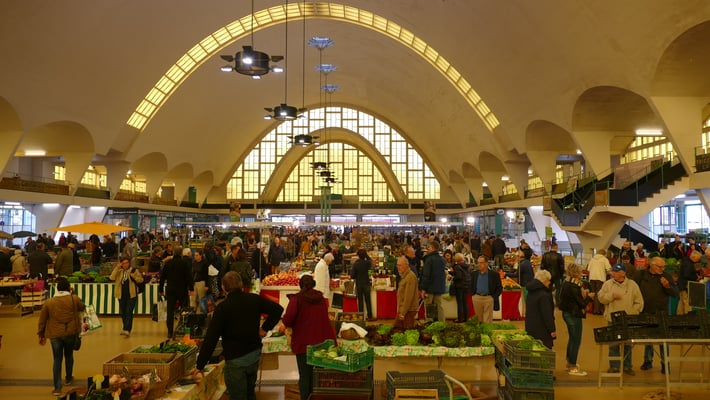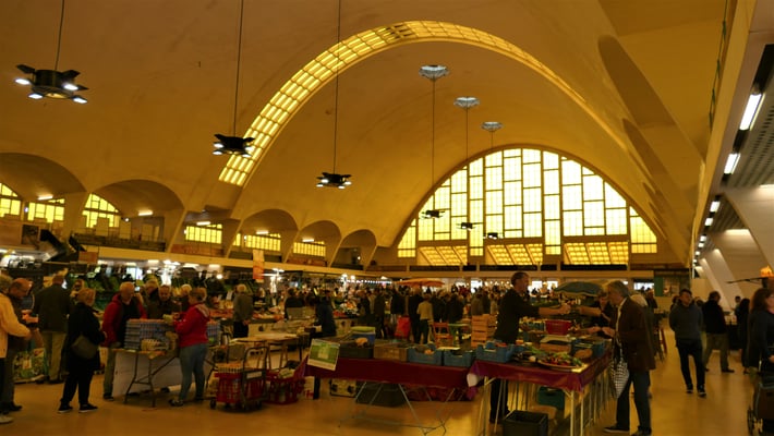 Édifiées en 1927 par l'architecte Émile Maigrot et l'ingénieur Eugène Freyssinet, les Halles du Boulingrin sont nées suite à un concours d'architecture lancé en 1922 pour la construction d'un marché de gros et de détail, puis furent désaffectées en 1988. La voûte de béton faiblement armé qui surplombe les étals à 19,85 mètres de hauteur est épaisse de 7 cm seulement. Classées monument historique, elles ont été réhabilitées et remises en service en 2012.