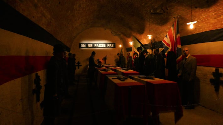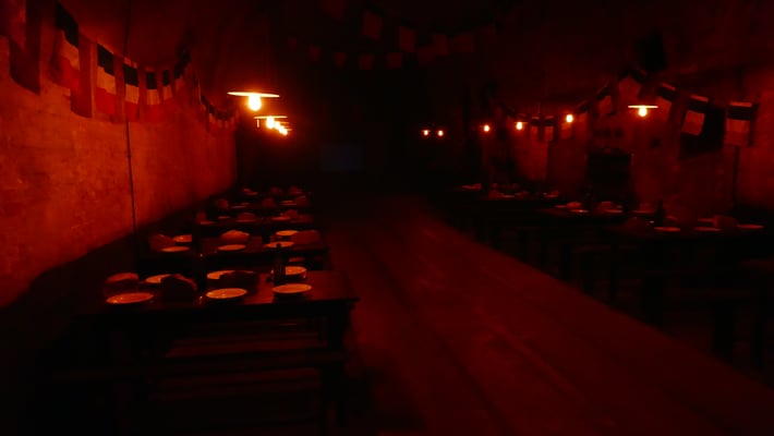 Près de 10 000 hommes vivent en permanence dans ses entrailles travaillent à tous les services d’une armée en campagne : central téléphonique, entrepôt de nourritures et de munitions, cuisines, hôpital, boulangerie avec une production de 28 000 rations par jour et même un théâtre.