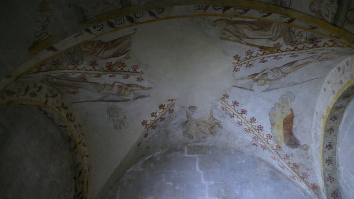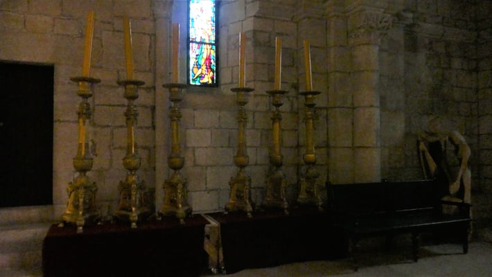 visite de la crypte, véritable bijou roman et hommage aux soldats de 1916 (piliers ouest de la crypte).