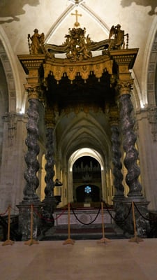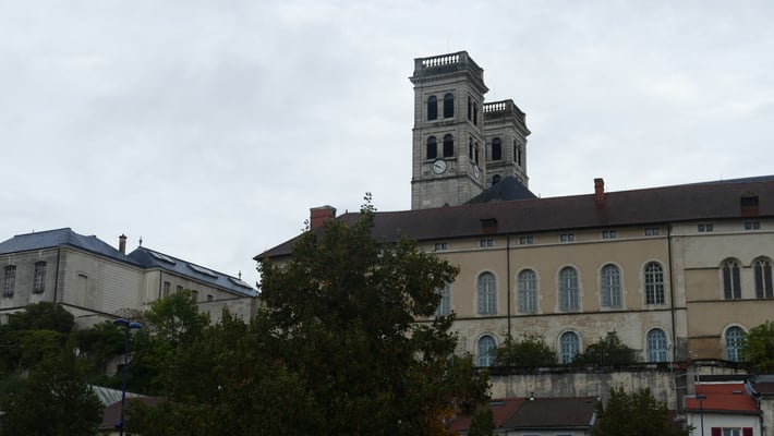 cloitre du XVIe s., décor baroque du XVIIIe s. Un incendie frappe la toiture de la cathédrale le 2 avril 1755, nécessitant une restauration de l'édifice. L'évêque de Nicolai et le chanoine Chaligny de Plaine, féru d'histoire de l'art, font pénétrer le style baroque dans la décoration intérieure de la cathédrale. Le baldaquin à la croisée du transept et du chœur Est fut installé à cette occasion.
