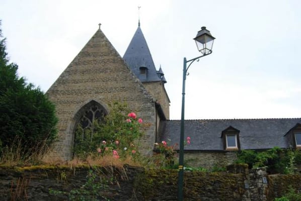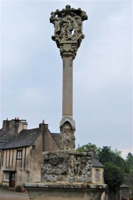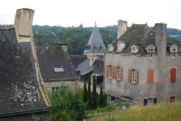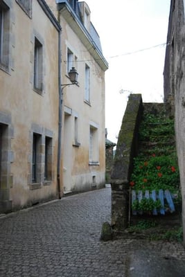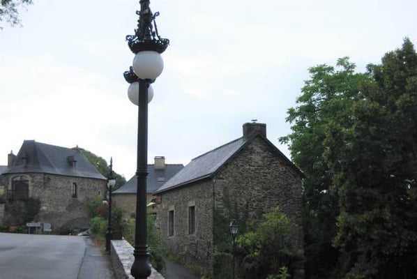 Les époques architecturales se déclinent visiblement sur la place du Puits avec des maisons de schiste et de granit, des encorbellements et des colombages. Remarquez la balance sculptée au dessus de la porte du bâtiment à côté du puits (bâtisse du 17ème siècle) : c’est ici que se trouvait le tribunal seigneurial. Sur la place du Puits se trouvait la première halle de la ville ; c’est également l’endroit supposé de l’installation de la guillotine utilisée en 1793 pour l’exécution de trois condamnés contre-révolutionnaires