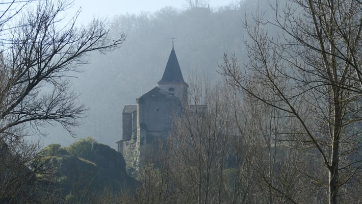 Le méandre du Tarn long de 3 km forme une presqu’île, dominée par un prieuré et une église romane du XIe siècle, construits sur une aiguille schisteuse. Une magnifique vue sur le méandre et la vallée s’offre au visiteur en empruntant le chemin de croix menant au Prieuré. Le village a la particularité d'être construit sur l'isthme le plus prononcé d'Europe.