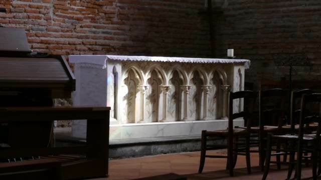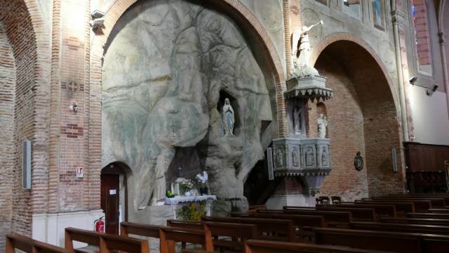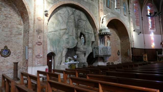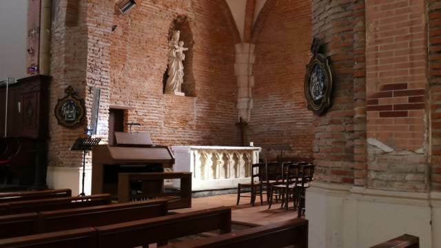Construite vers 1685, l'église ferme à moitié la place centrale du bourg. Elle possède un porche et un clocher octogonal de style toulousain. Son portail comporte des éléments Renaissance. Elle contient la chasse de saint Ansbert, un abbé légendaire de Moissac.
