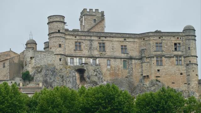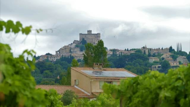 Un imposant château du XIIe siècle, doté de tours rondes, domine les maisons du village de Le Barroux.