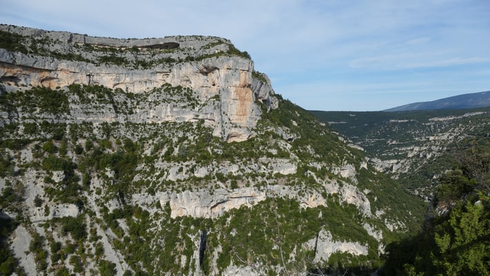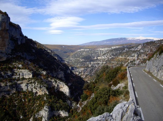 Départ pour les gorges de la Nesque, superbe mais quelques émotions en arrivant sur le passage du premier tunnel ( panneaux de limitation de hauteur à 3 m40 au centre mais sur la droite du tunnel et 2 m 50 sur la droite et 3 m à gauche!!!) J'ai préférer faire demi tour....