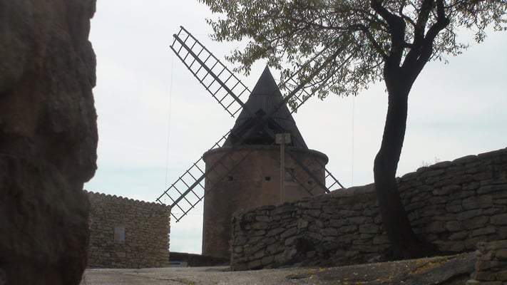 Un petit tour par le village de Goult et principalement son moulin, la mairie à mis en place un petit parking pour nous en tournant un peu on arrive à le trouver…(N 43.86176 – E 5.24559).