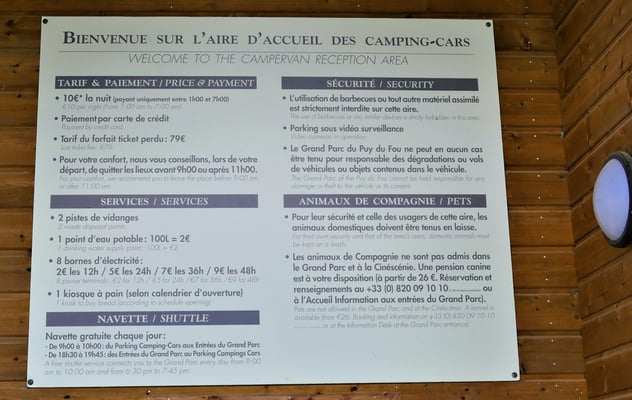 Stationnement nuitée (1 H à 7 H du matin): 10 €