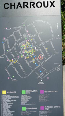 Cité ancienne classée parmi les "Plus Beaux Villages de France", Charroux fut une ville fortifiée et un important carrefour d'échanges au Moyen Age. Le nom évocateur des rues témoigne encore de cette grande activité : rues de la poulaillerie, de la corderie, des tanneurs, des fours à chaux... Charroux conserve de cette époque, des façades en pierre sculptée des XVème au XVIIIème siècles, une maison à pans de bois et à encorbellement du XIVème siècle remarquablement préservée et un nombre exceptionnel de puits.