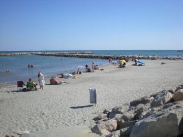 Ce soir nous nous installons pour avoir l’électricité dans le camping ayant une zone spéciale CC aux Saintes Marie de la Mer et première chose pour Arlette foncer à la plage...