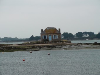 Une pause dans un site exceptionnel avec vue sur l’ile de Saint Cado et sa maison seule perdue, un décor de carte postale.