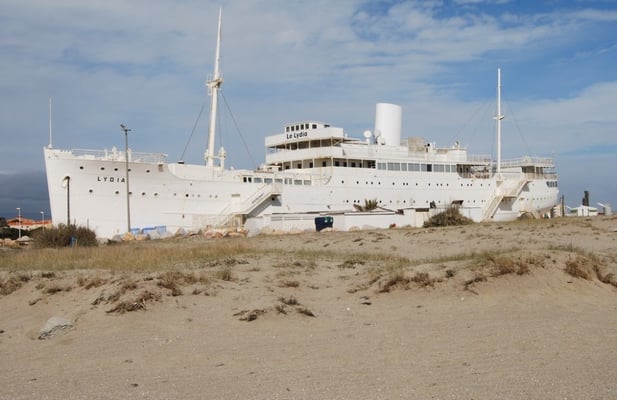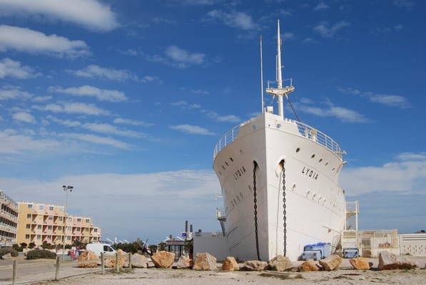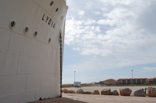 Après le repas sur un parking du bateau échoué sur la plage (le Lydia – restaurant casino du groupe Partouche).